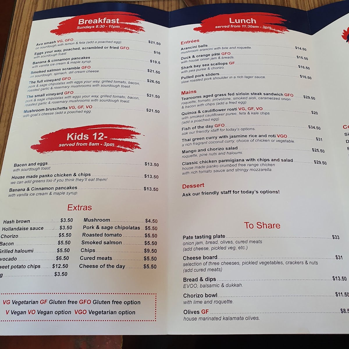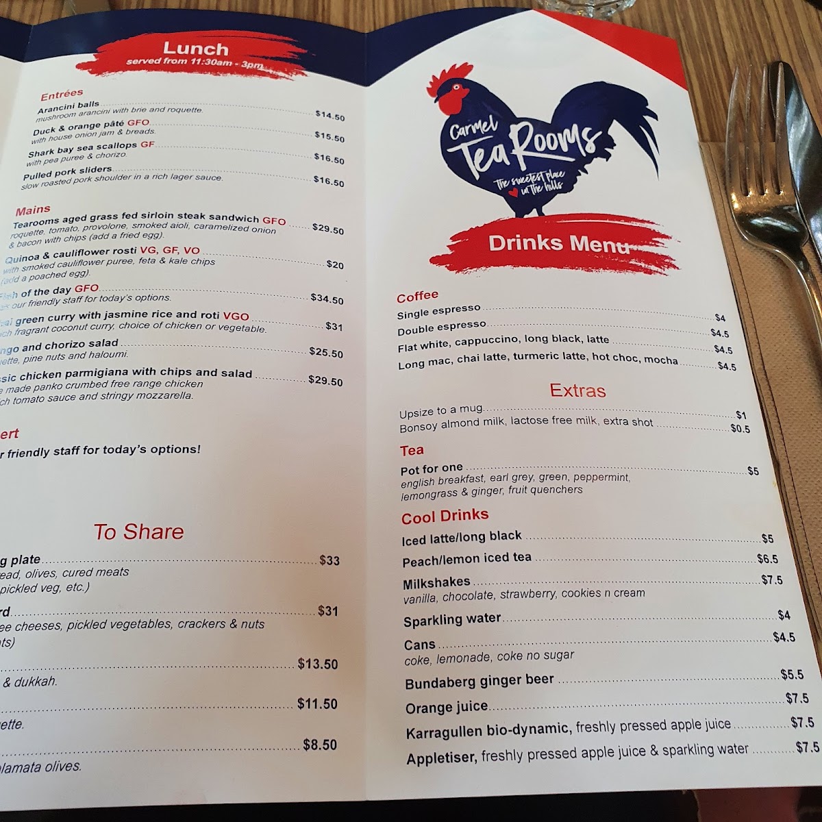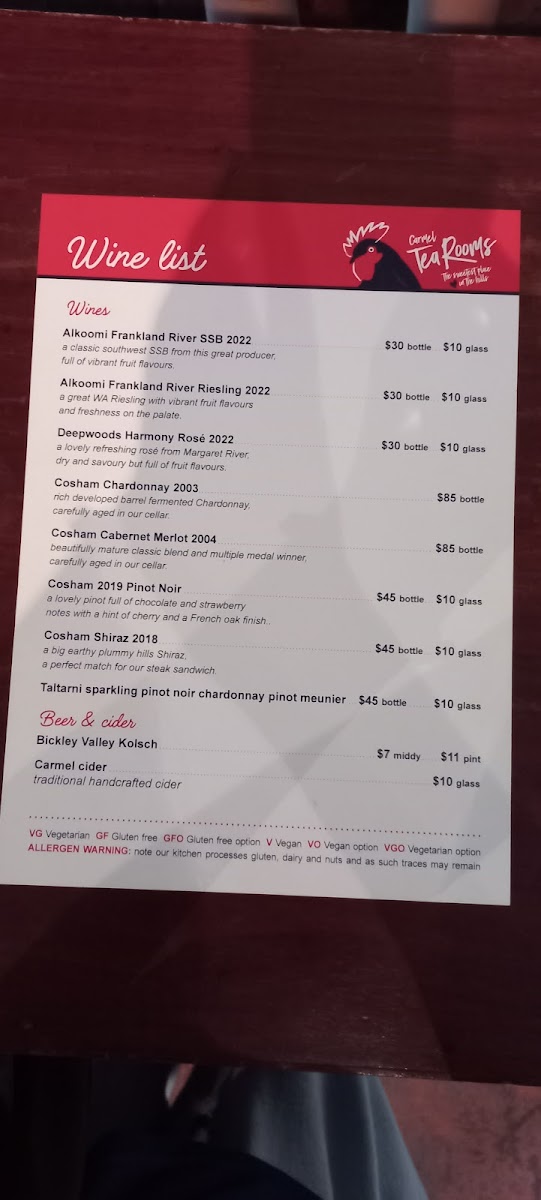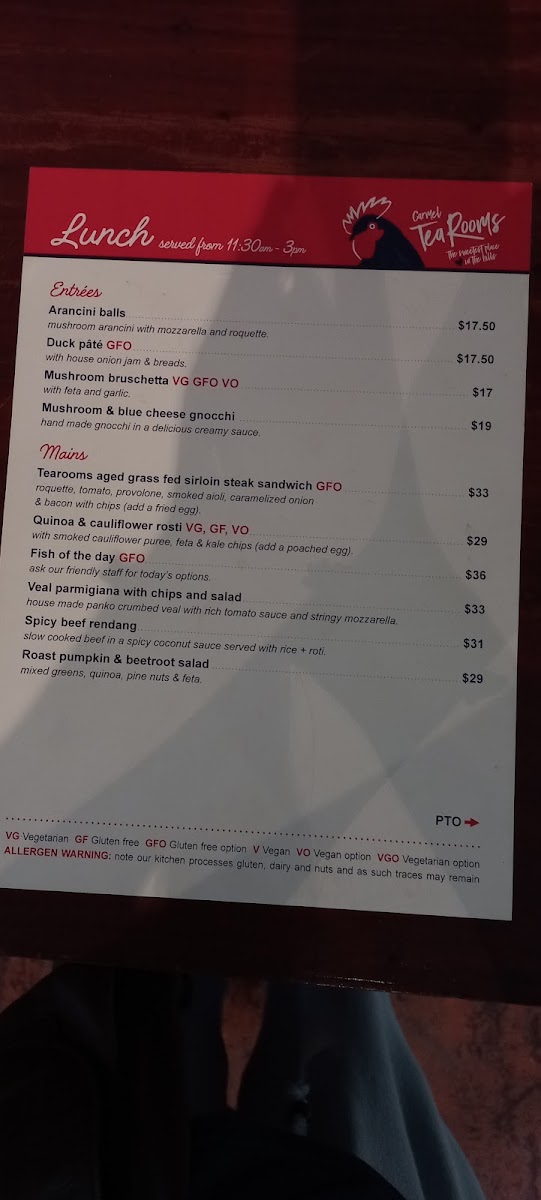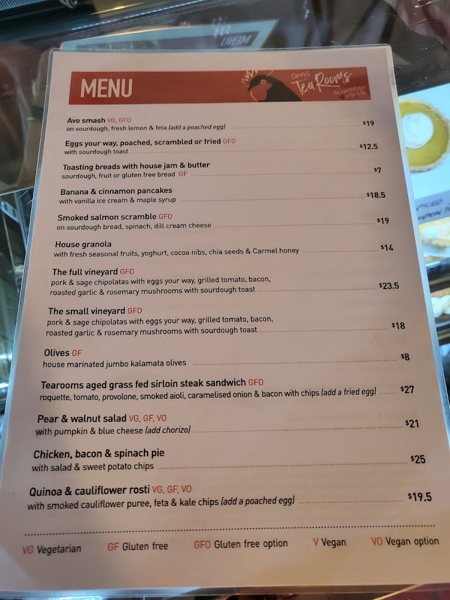 Carmel Tea Rooms Menu